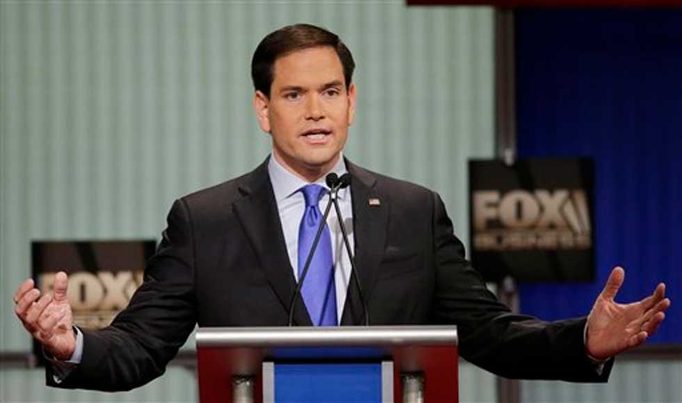 Republican presidential candidate, Sen. Marco Rubio, R-Fla., speaks during the Fox Business Network Republican presidential debate at the North Charleston Coliseum, Thursday, Jan. 14, 2016, in North Charleston, S.C. (AP/Chuck Burton)