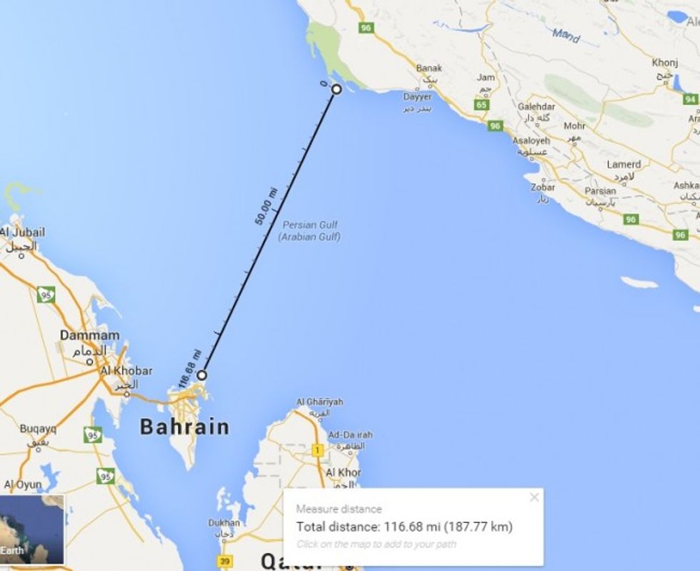 However, Pelosi stretched the truth a bit. Bahrain isn't that close to Iran, and in fact, Iran is not visible from Bahrain.