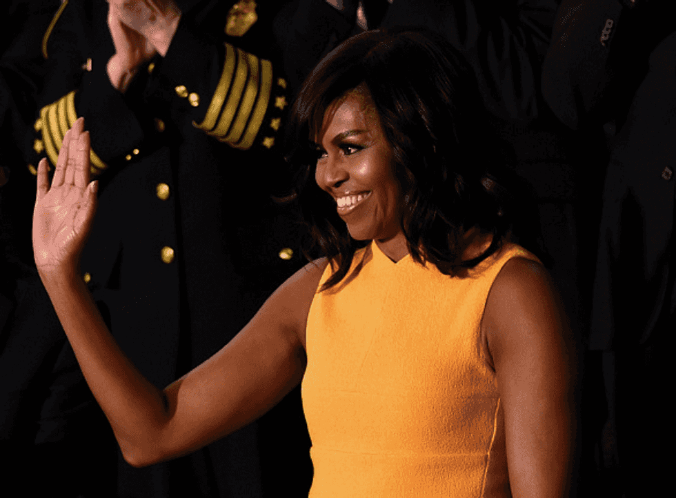 First Lady Michelle Obama waves before the arrival of President Barack Obama before the State of the Union Address at the U.S. Capitol Tuesday. (Saul Loeb/AFP/Getty Images)