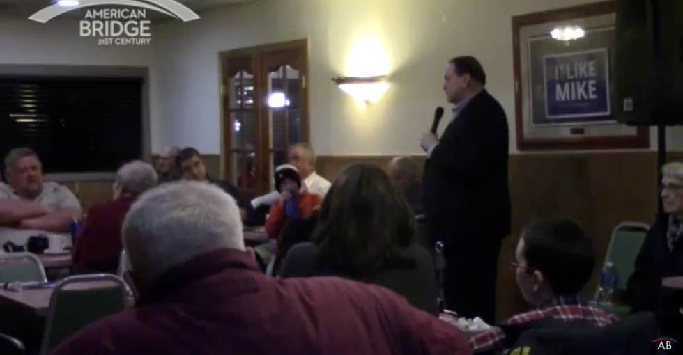 According to video taken by the Democratic opposition research group American Bridge, the woman charged that because Huckabee said he felt sorry for the Duggar parents when news of Josh Duggar's sexual molestation surfaced, that meant he must support child abuse.