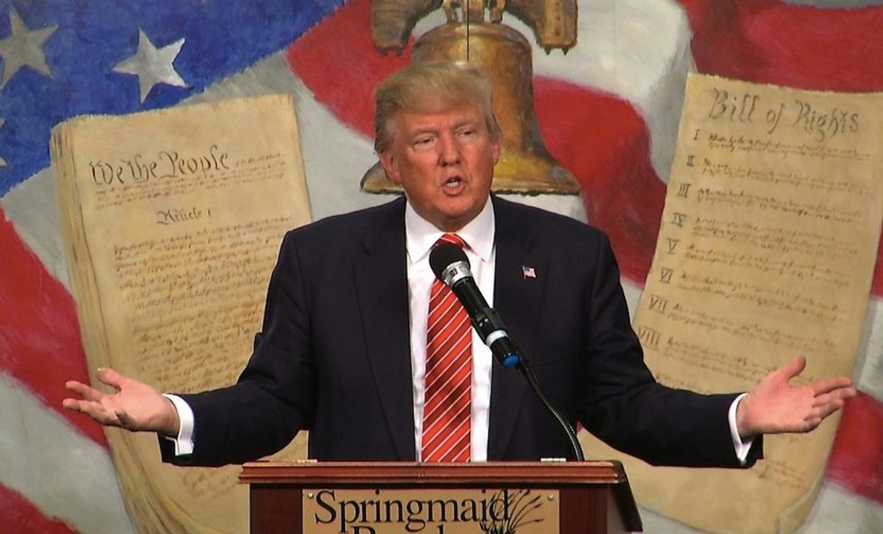 Here's the clip. Trump's relevant comments come at the very end of his speech, just after the 44:30 mark: