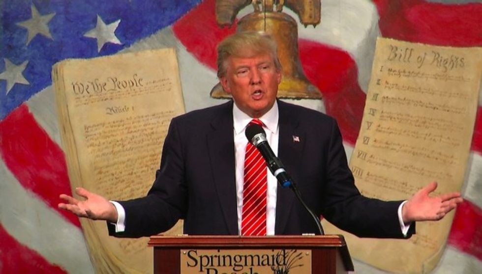 Republican presidential candidate Donald Trump speaks at the South Carolina Tea Party Convention in Myrtle Beach, S.C., Saturday, Jan. 16, 2016. (AP Photo/Alex Sanz)