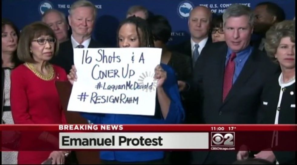 Watch: Demonstrator Interrupts News Conference, Demanding That Chicago Mayor Rahm Emanuel Resign