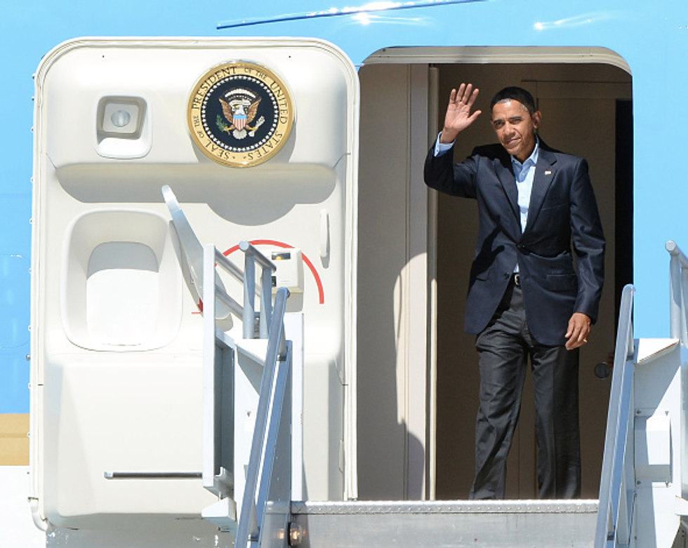 President Barack Obama arrives in Air Force One at LAX Airport on October 10, 2015 in Los Angeles, California. (Photo by Michael Kovac/WireImage)