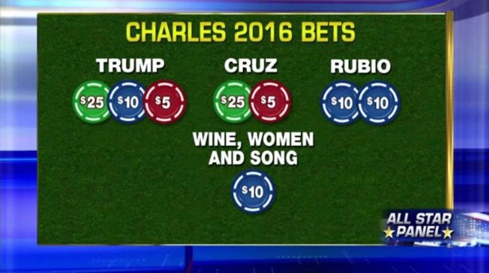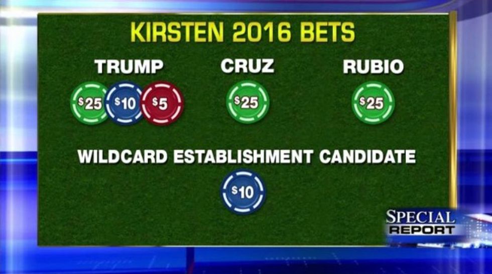 "Special Report" panelists Steve Hayes and Kirsten Powers also made bets.