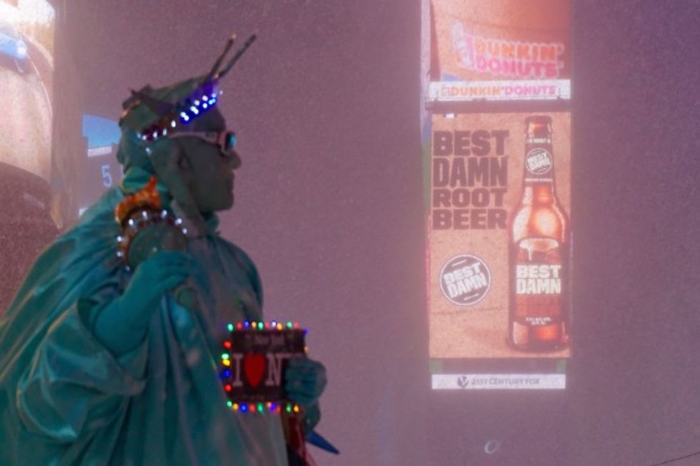 With Broadway shows dark, thin crowds shuffled through a different kind of Great White Way in Times Square.