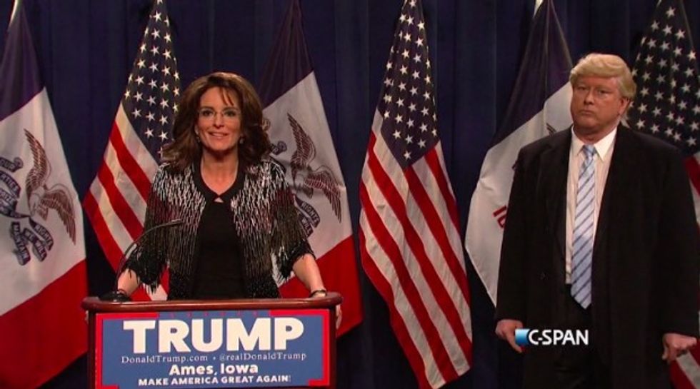 A Sarah Palin endorsement of GOP presidential candidate Donald Trump could only mean one thing for "Saturday Night Live" this week — a Tina Fey return.