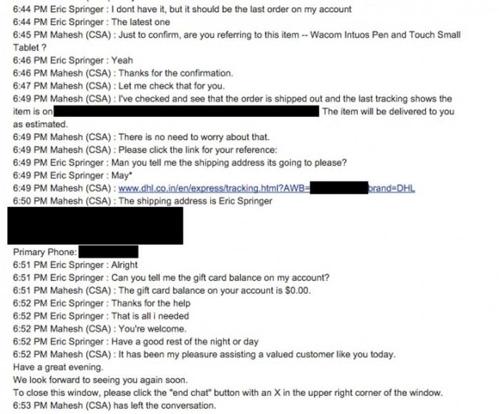 After reaching out to Amazon and requesting the transcript of the online conversation he supposedly had with customer service, Springer discovered that a hacker pretending to be him used customer service as a “back door” to obtain critical account information.