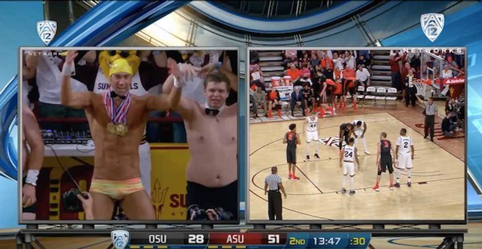 It was all part of a gimmick ASU calls the "Curtain of Distraction." When playing at home, the Sun Devils deploy the curtain directly behind the basket where their opponents shoot free throws.