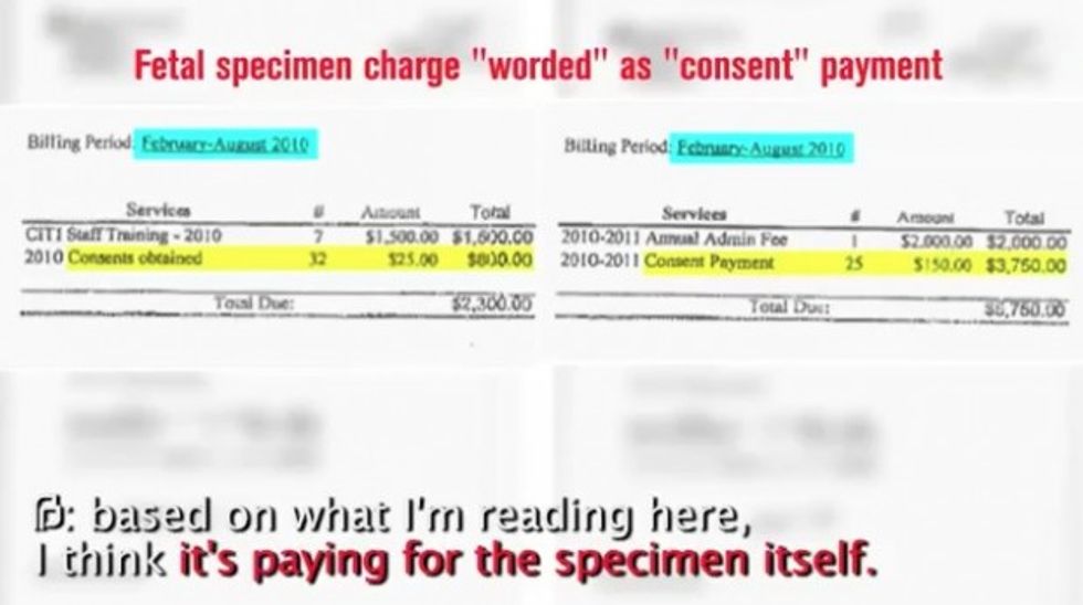 A scene from "Planned Parenthood Houston Admits Accounting Gimmicks Hide Baby Parts Sales, Invoices Charge $8,000." Image source: The Center for Medical Progress