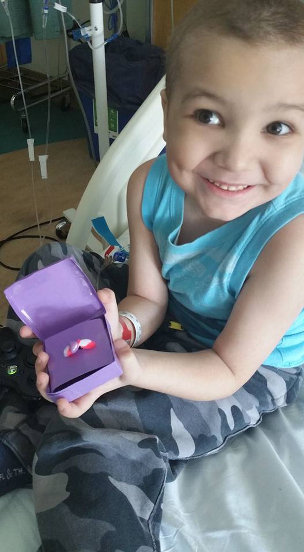 “It didn't take much time to make the ring, and in the hospital you have to figure out creative ways to pass time. So I thought of making the box, Gideon picked the color and we made it together. We ran into the music therapist and asked for her to play the background music, and the song ‘Happy’ — if she said yes,” Robinson told the Daily News.