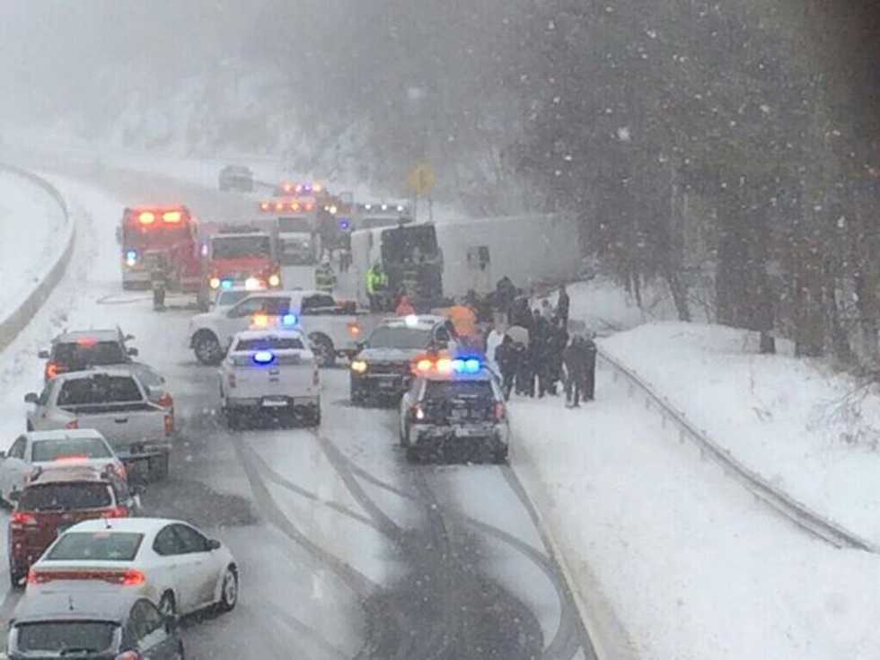 The state Department of Transportation says the accident happened at about 12:30 p.m. Monday in Madison, Connecticut. The accident occurred during a snowstorm that was expected to drop up to a foot of snow on parts of the state, but it was not immediately clear if the crash was caused by the weather.