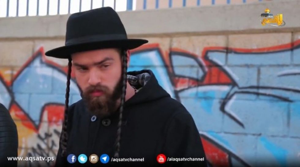 The actors playing the Israeli victims were put in costumes meant to resemble those worn by ultra-Orthodox Jews. But instead of curled sidelocks known as “payes,” one of the actors sported two little girl braids over each ear.