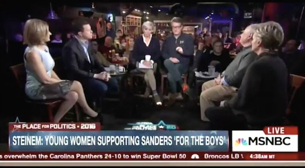 The "Morning Joe" panel was discussing a recent statement Steinem made on Bill Maher's HBO show (and her subsequent apology posted on Facebook) about young women who follow Bernie Sanders and Albright's warning of a "special place in hell" for women who do not help other women.