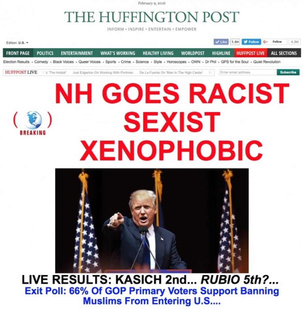 Huffington Post Goes Nuclear After Trump Wins New Hampshire — Take a Look at Outlet's Front Page