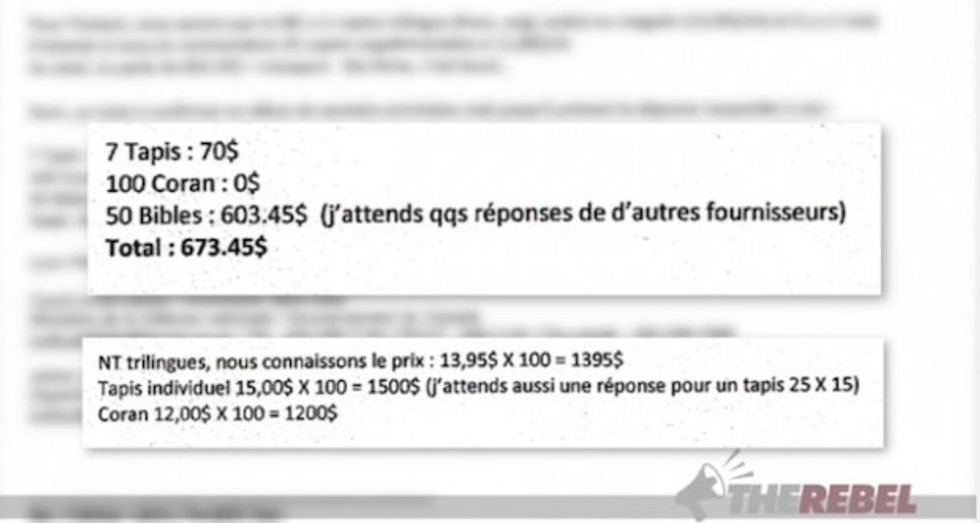These government-released documents included prayer rugs ("tapis" in French) and Korans ("Coran" in French) in the budget. Note that 50 Bibles were also budgeted: