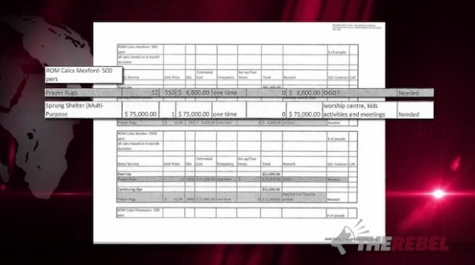 In Ontario, $54,000 U.S. was discussed for setting up a Muslim worship center as well as $4,700 U.S. for prayer rugs at one base and $15,600 for rugs at another base.
