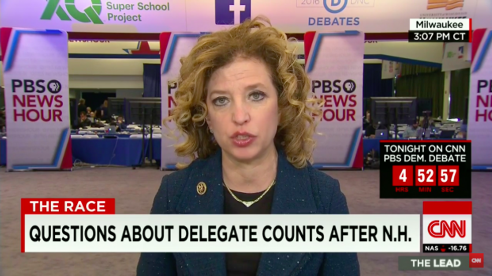 Democratic National Committee chairwoman Debbie Wasserman Schultz discusses the Democratic Primary on CNN Thursday, Feb. 11. (Image source: CNN/YouTube)