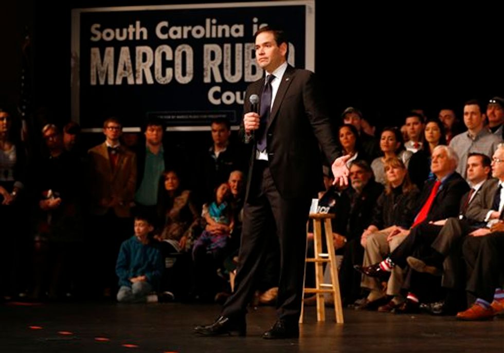 Republican presidential candidate Sen. Marco Rubio, R-Fla., speaks during a campaign stop, Sunday, Feb. 14, 2016, in Easley, S.C. (AP Photo/Paul Sancya)