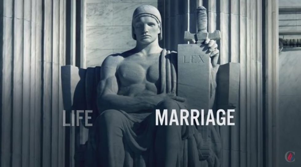 “Life, marriage, religious liberty, the Second Amendment. We’re just one Supreme Court justice away from losing them it all,” a narrator begins the ad.