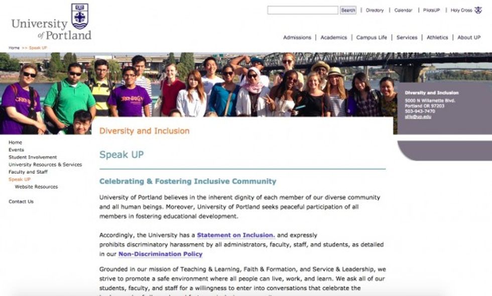 “We ask members of our community to SPEAK UP and report alleged incidents of discrimination and incidents of discomfort regarding observed or experienced interactions of intolerance,” the University of Portland stated on the page.
