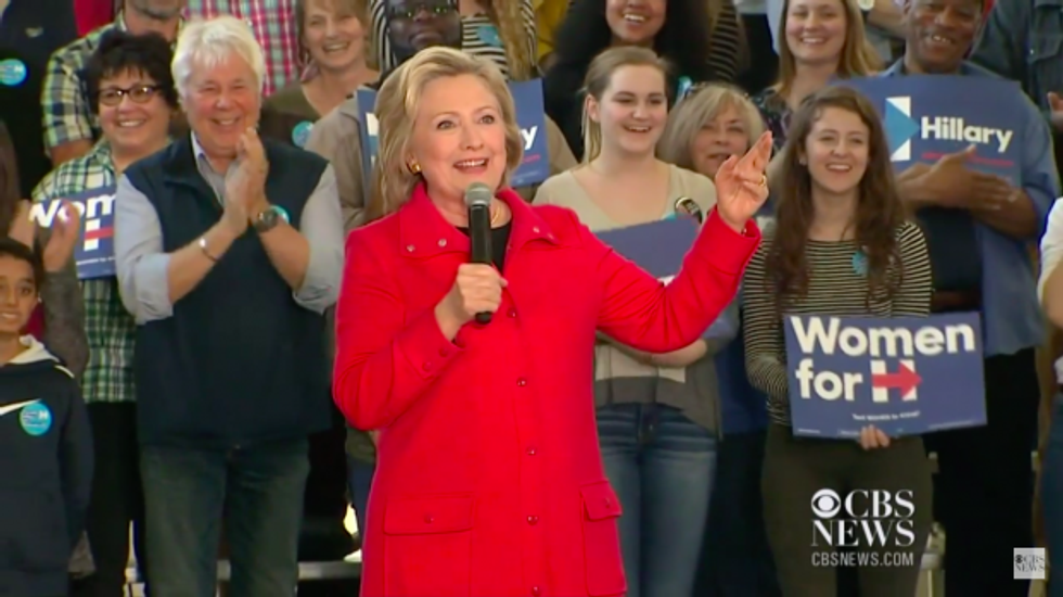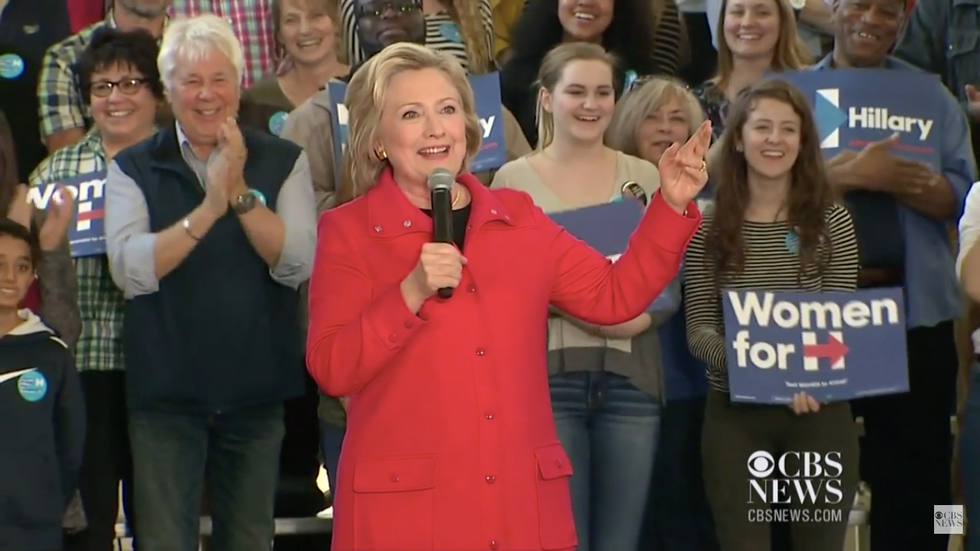 Hillary Clinton campaigning in Reno, Nevada, Monday, Feb. 15. (Image source CBS News/YouTube)