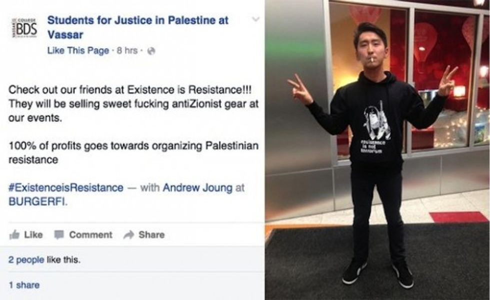 After the Students for Justice in Palestine’s Facebook post was pointed out by conservative websites that cover college campuses, the Vassar group appears to have edited the language of its Facebook post to: “100% of profits goes towards Existence Is Resistance,” an apparent effort to downplay the terrorist implication of its initial call.