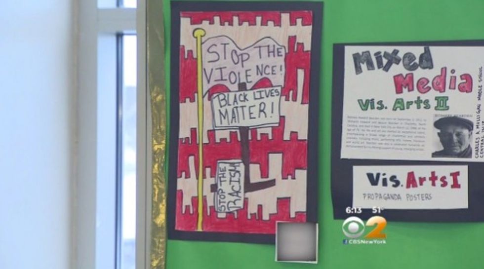 “'Black Lives Matter,’ we feel, is anti-police and the rhetoric that they spew is anti-police and we actually have them on video walking the streets of New York City calling for the death of police officers,” he told WCBS-TV. “So for it to be hanging in a courtroom, we find outrageous.”