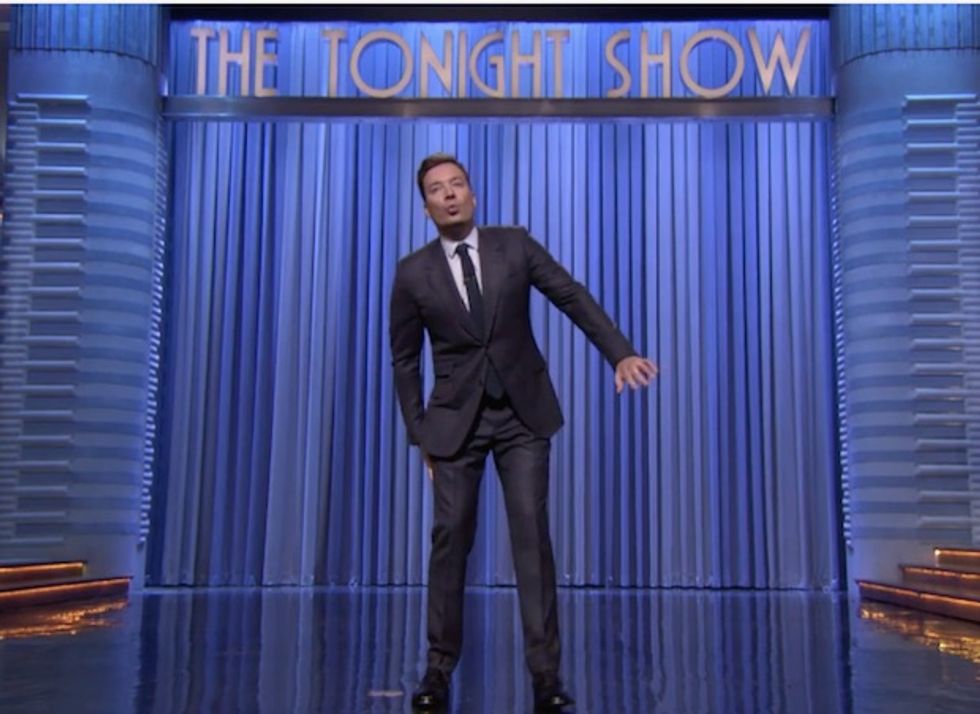 If you were two minutes late tuning into Wednesday's "The Tonight Show With Jimmy Fallon," you might have initially thought NBC was running an old episode with Jay Leno as host. It was, in fact, a new show with the former late night TV host "tagging in" and taking over after Fallon "pulled something" during the first 10 seconds of his monologue.