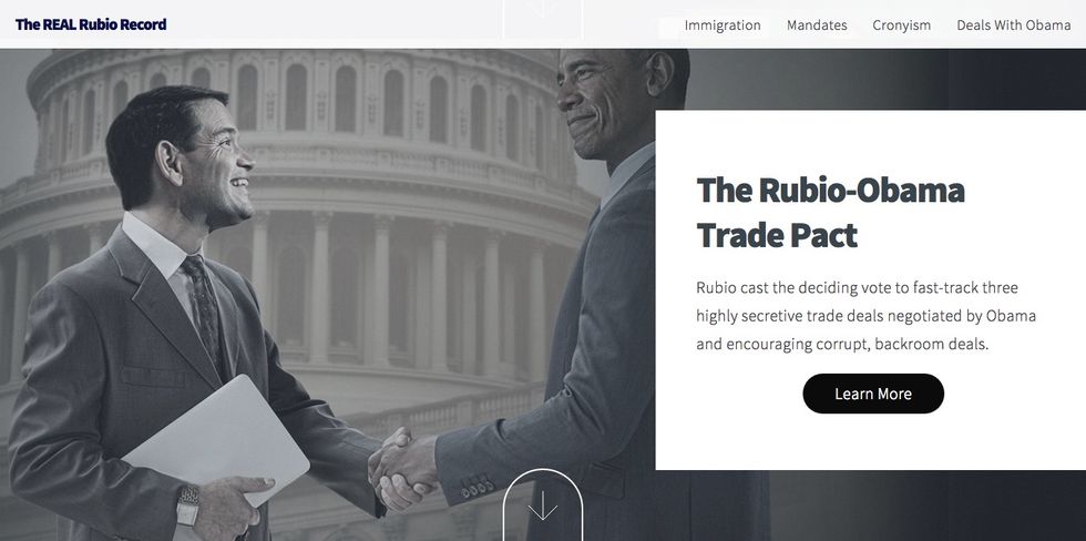 The website in question cites Rubio's record on issues such as immigration and the Trade Promotion Authority fast-track — an issue that Harris said both Cruz and Rubio supported. However, while Cruz initially voted for the controversial TPA deal to advance to the floor, he ultimately changed his position and voted against the bill in June.