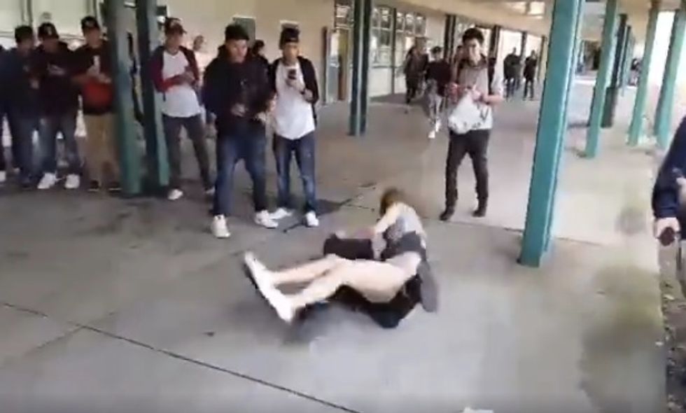 Students told KGO-TV that the boy — from Sonoma Valley High where the video was recorded — made comments on the girl's Facebook page she didn't like. The girl — from Creekside Alternative High School, which shares a campus with Sonoma Valley — reportedly confronted the boy last Thursday. He then threw water at her, students said, and then the fighting commenced.