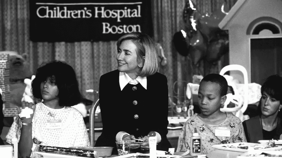 The ad shows Clinton at various stages in her career, highlighting her legacy of public service and leadership in civil rights issues.