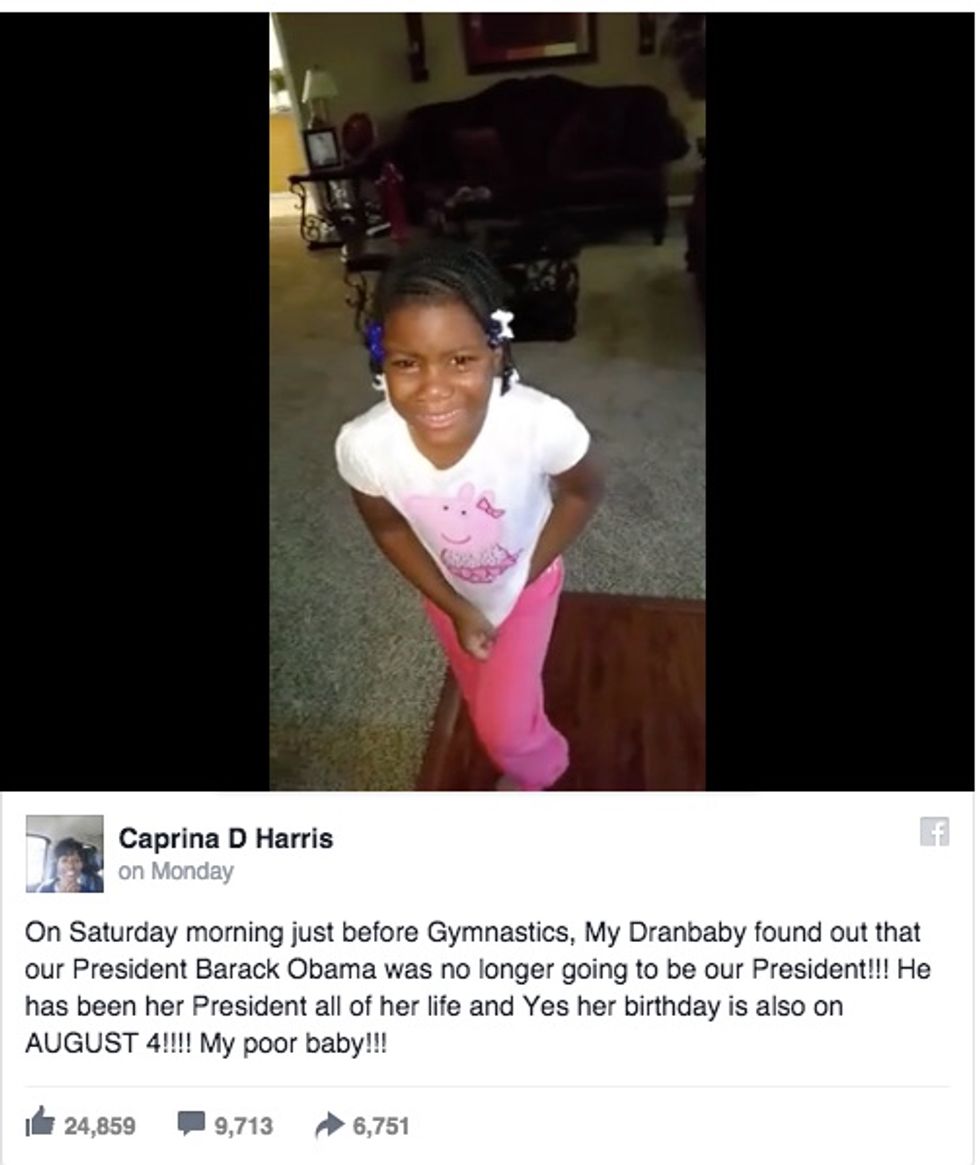 It’s true that some people don’t welcome change as freely as others. One little girl was so upset to hear that President Barack Obama’s presidency would be ending soon that she began the grieving process early.