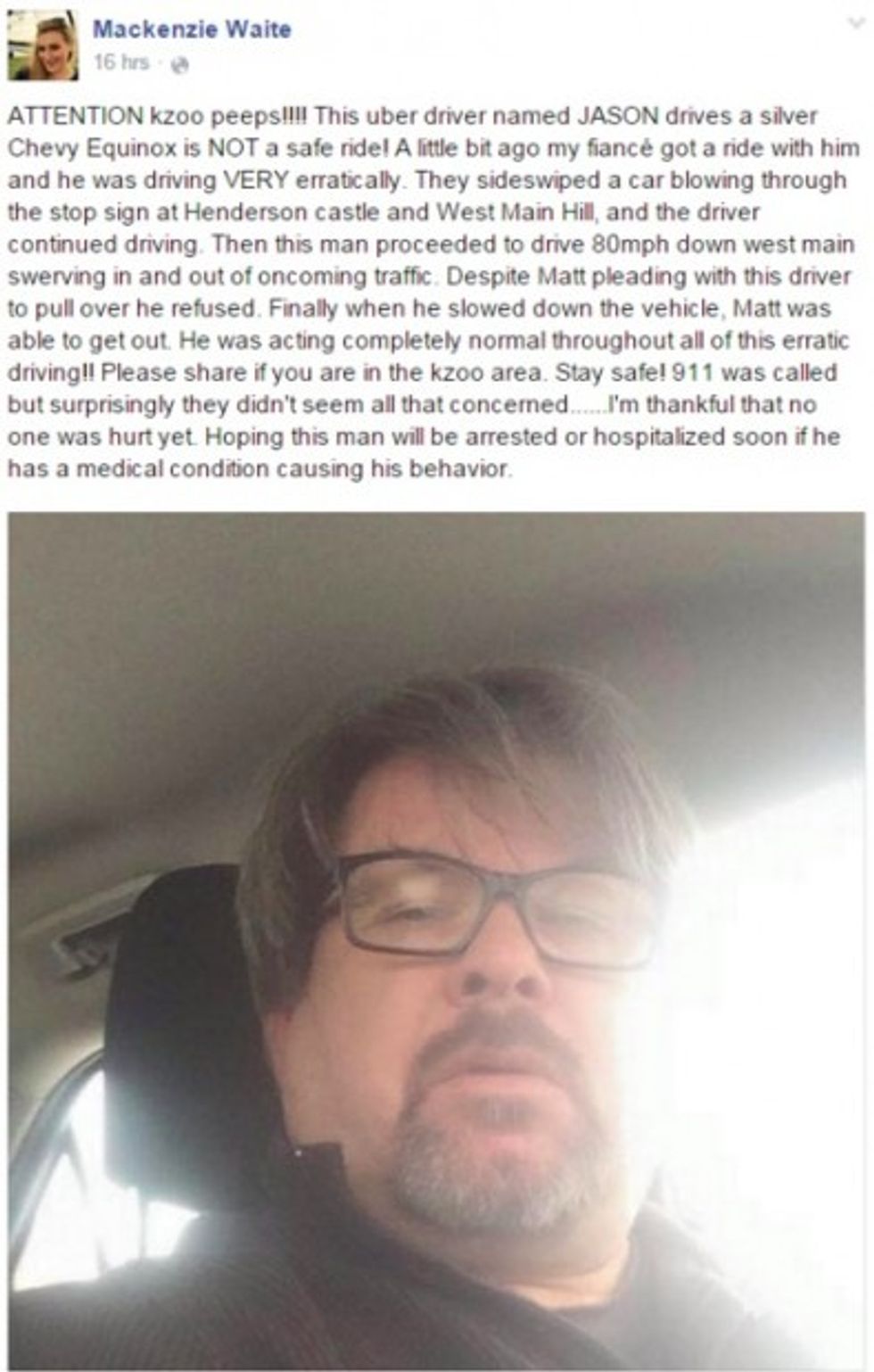 Once Mellen got to his friend’s house, he explained the events to his fiance, who posted a warning on Facebook with Dalton’s Uber photo.