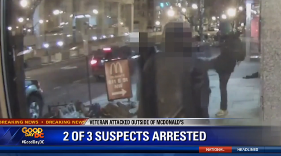 Police say they have arrested two suspects in connection to the brutal beating of a Marine veteran outside of a McDonald's in Washington, D.C., last week. However, there is still a third suspect on the loose.