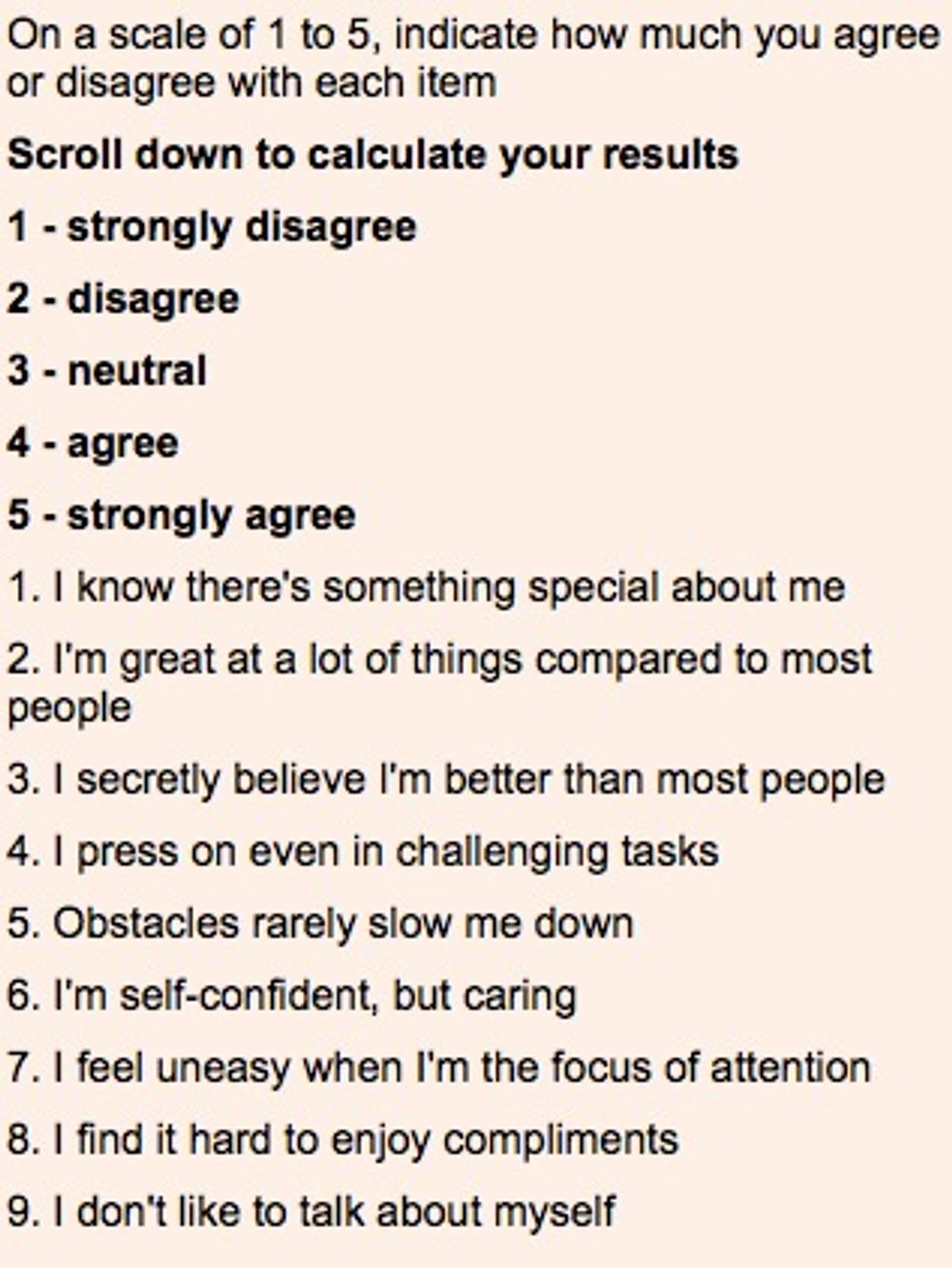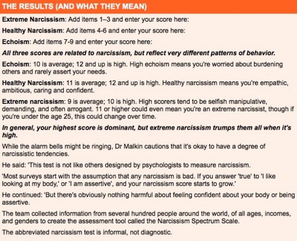 According to the Daily Mail, a coinciding test developed by Dr. Craig Malkin, a Harvard-trained psychologist, can be used to “determine the scale of your narcissism.”