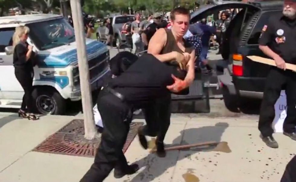 One Klansman stabbed a counter-protester with the decorative end of a flag pole, Wyatt said. That stabbing set off a vicious brawl in which Klan members and protesters fought across an entire city block.