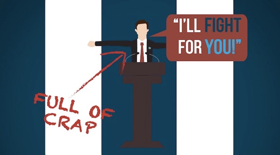 "Don’t vote for anyone who says, 'I’ll fight for you.' Because that person is full of crap and has no intention of not only fighting for you, he doesn’t know who you are. He or she is just moving on to the next town where they can point at the next sap and say, 'I’ll fight for you.'"