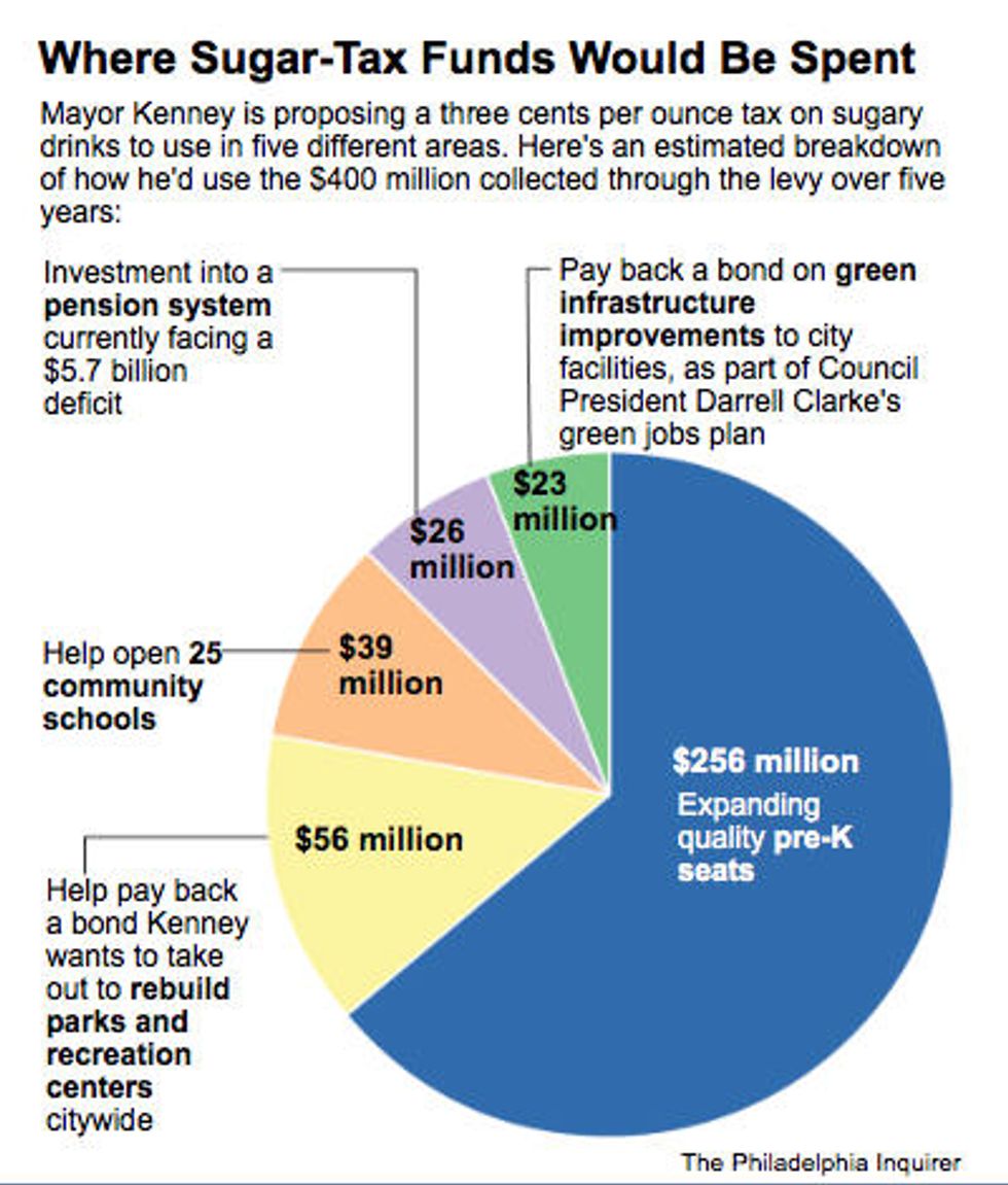 Mayor Jim Kenney tells The Philadelphia Inquirer he believes the 3-cents-per-ounce tax could bring in $400 million over five years.