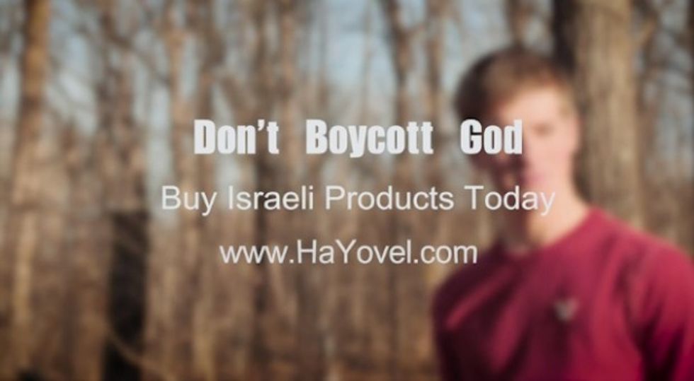 The video concludes with the onscreen message: “Don’t boycott God. Buy Israeli products today.”