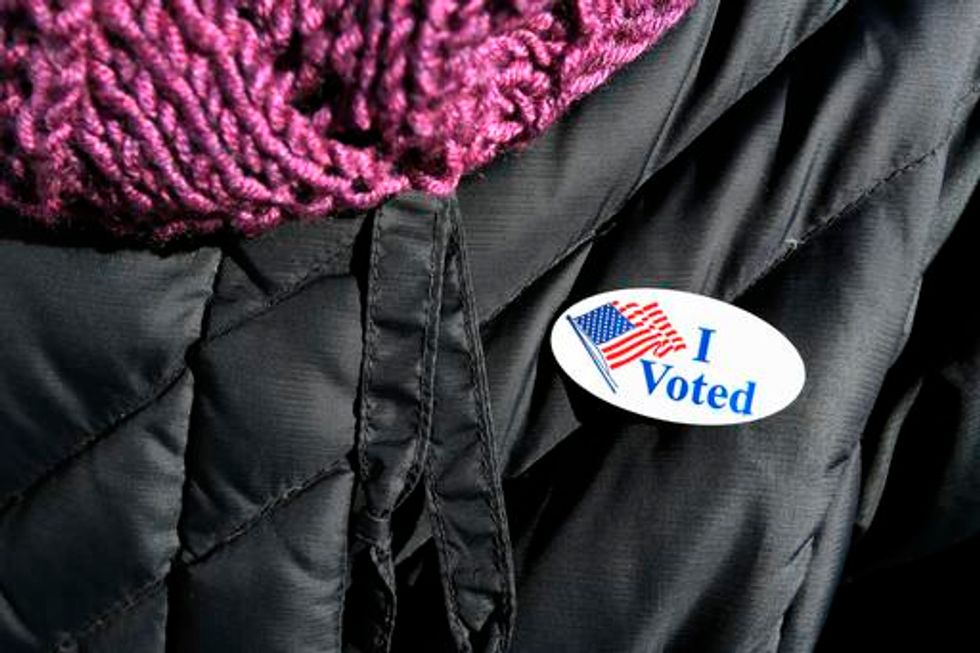 A woman wears an "I voted" sticker after voting in Massachusetts' primary election in the East Boston neighborhood of Boston, Tuesday, March 1, 2016. (AP Photo/Michael Dwyer)