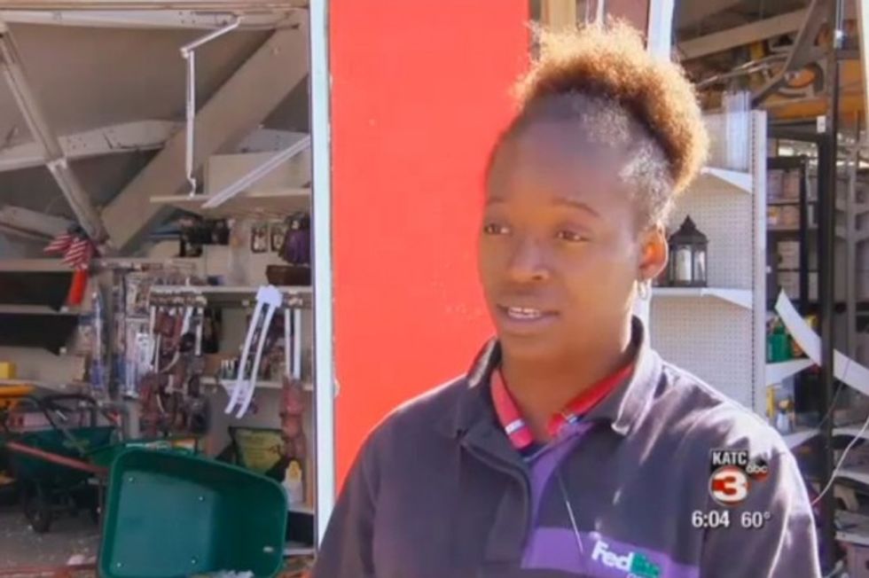 Just Before Tornado Hits, FedEx Driver Runs From Truck and Ducks Behind Coke Machine. Surveillance Video Captures Her Next Terrifying Moments.