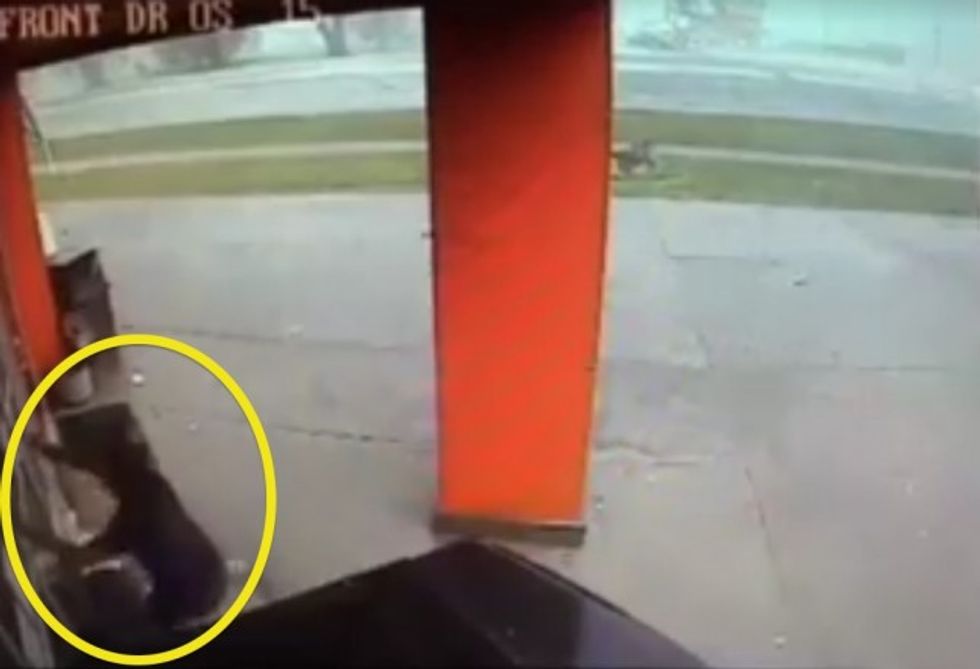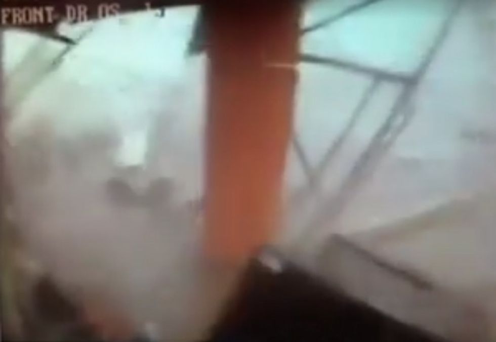 The surveillance camera showed progressively more debris blowing around the store's entrance until the terrifying moment when the tornado hit.