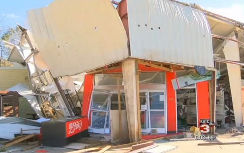 "The electricity went out and I didn't hear any wind or rain," he wrote. "Then all of a sudden I heard the 'freight train' I yelled over our radios for everyone to head to the back as fast as they could with any customers in the store. I was one of the last ones in the bathroom and as I was closing the door I could see the side wall being sucked out."