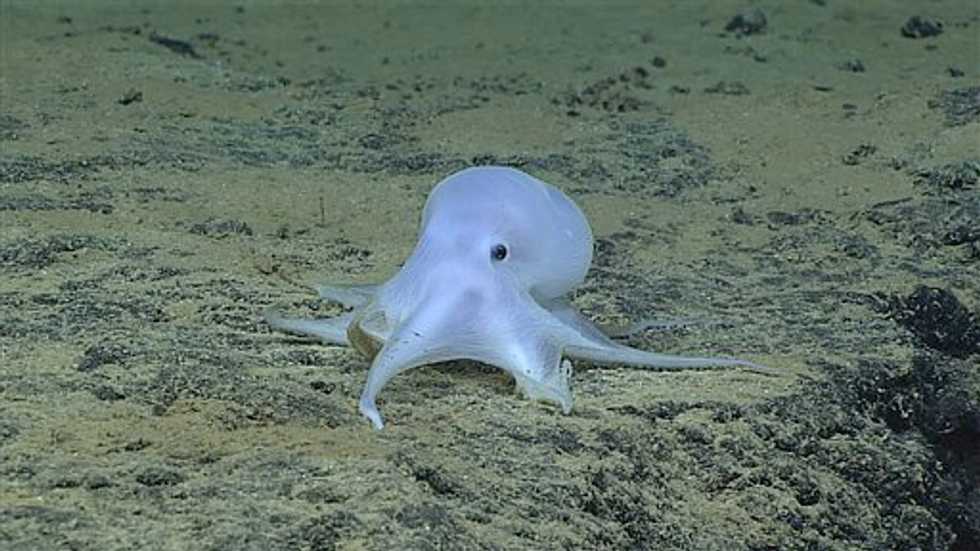 This image provided by courtesy of NOAA Office of Ocean Exploration and Research, Hohonu Moana 2016, shows a possible new species of octopus. (NOAA Office of Ocean Exploration and Research, Hohonu Moana 2016 via AP)