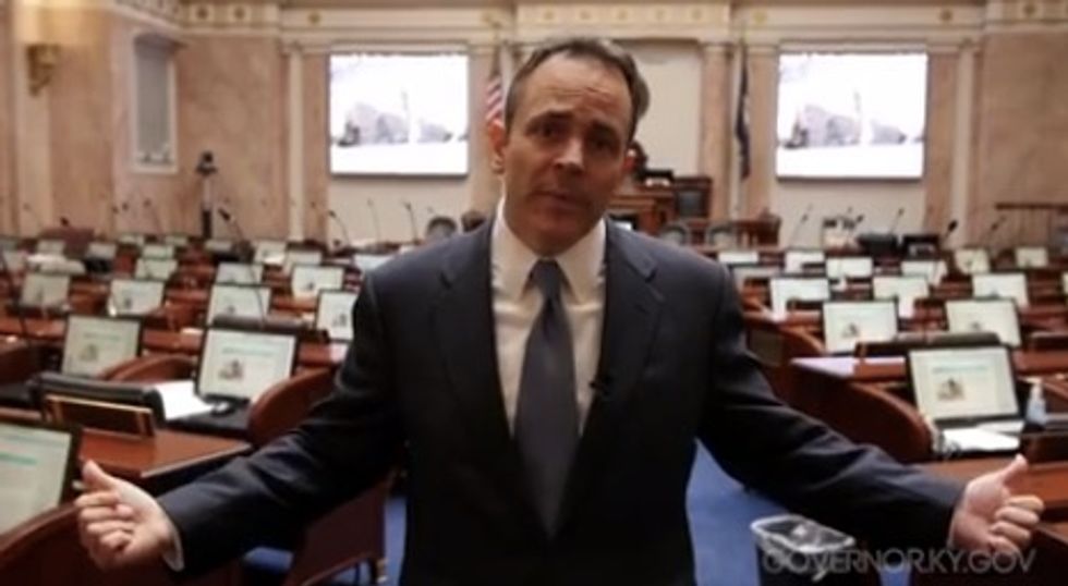 Bevin added that it is "completely unacceptable" that the House hasn't delivered a budget to him and specifically criticized Democratic House Speaker Greg Stumbo. In the video, Bevin implored him to "get serious about putting out a budget, to work with the people in this House and the Senate, to actually take care of our financial problems."
