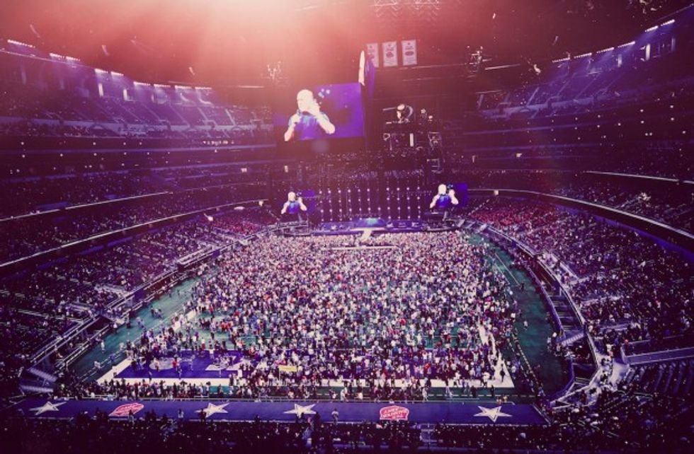 In addition to the 82,000 people who showed up at the Texas stadium, hundreds of thousands of others watched the event from 7,200 remote broadcast locations in 123 countries across the globe; 750 churches were involved in streaming the event to their congregations.