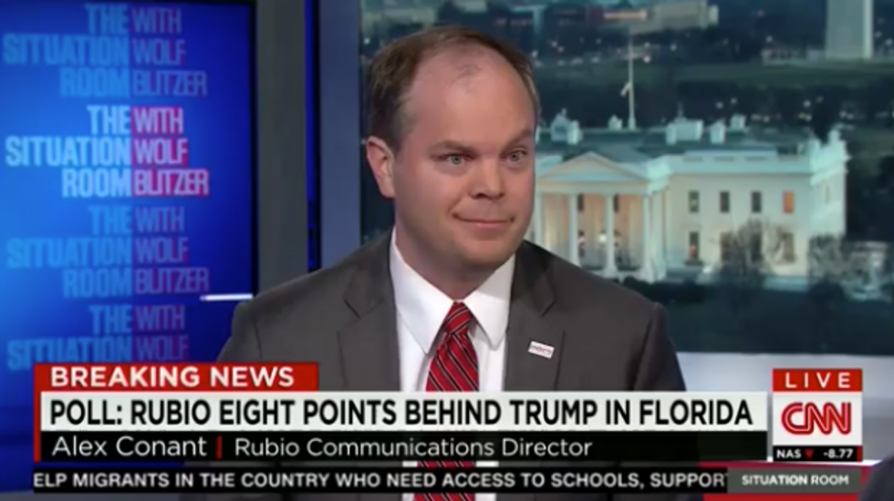 Speaking with Wolf Blitzer Monday, Conant slammed CNN for a story they were reporting, which alleged that Rubio's advisers had asked him to suspend his campaign before the Florida primary. Conant labeled the story "fiction" and said CNN "should stop reporting it."