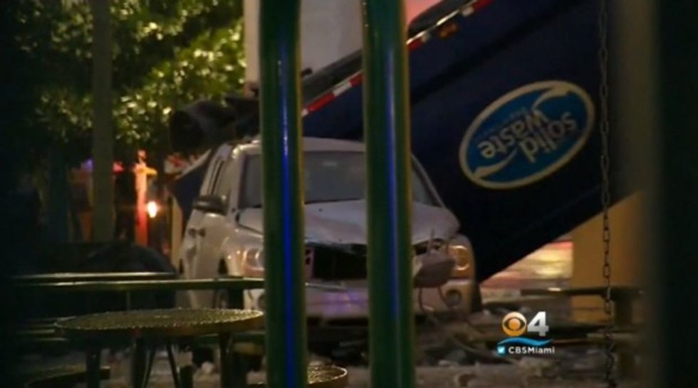 “Thank God there were no kids in the park at the time,” Sanchez said. “Throughout this ordeal, the driver almost walked away and was hospitalized and is now home. He is a very lucky man. It is a miracle.”