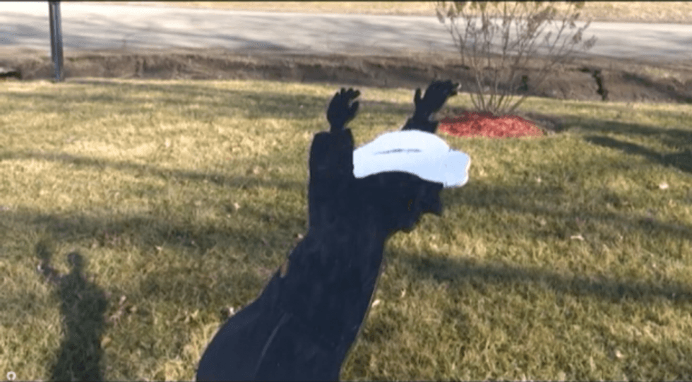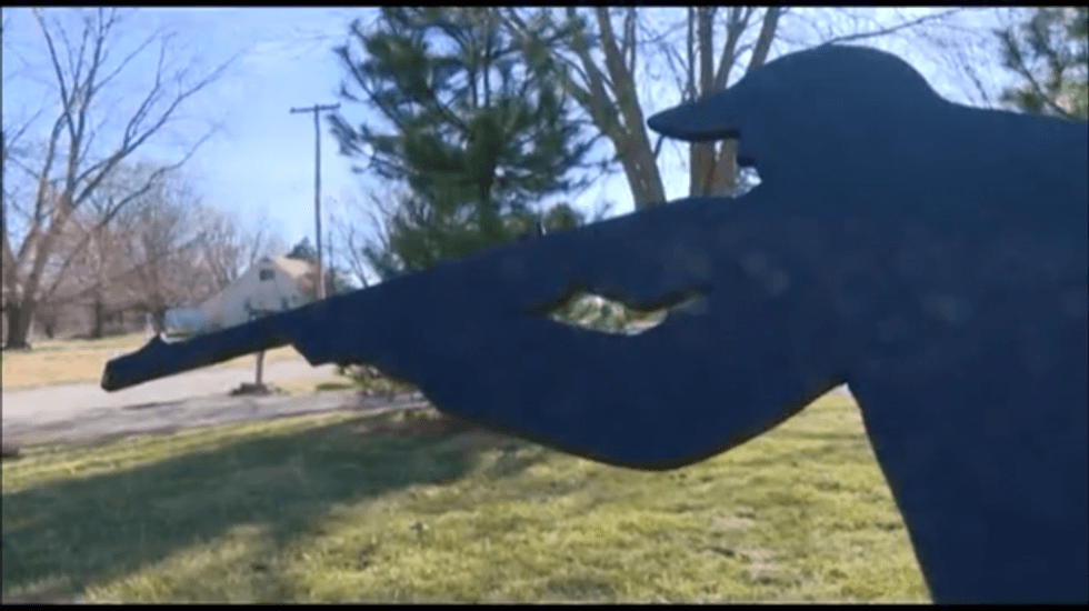One Illinois man is making headlines for the shotgun-toting silhouette he has in his front yard. However, the reason his display is drawing attention has less to do with guns and more to do with what, or whom, the firearm is "aiming" at.
